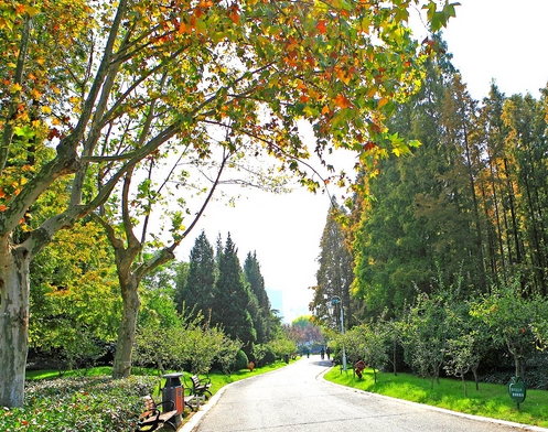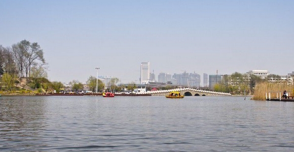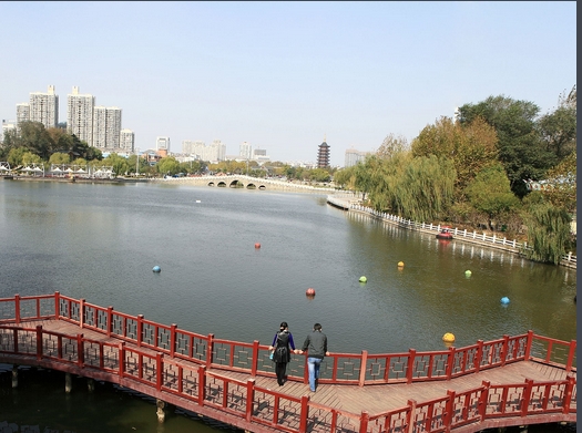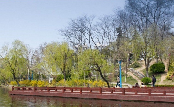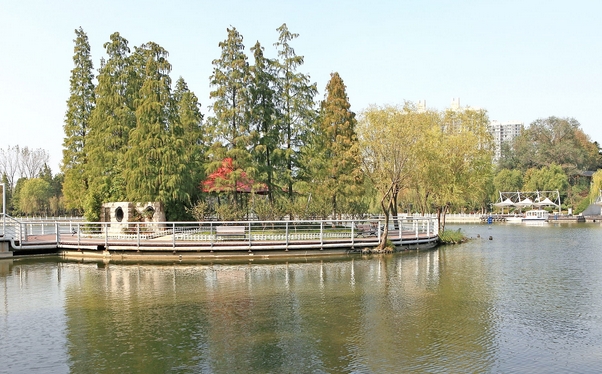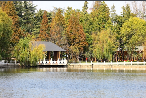 “舟在水中行,人在画中游,山丘绕水域,湖畔听歌声”。楚秀园最美的地方是它的水面,沿着湖边的小径行走,听风低语,看柳舞蹈,欣赏湖边美丽的景色,心情像花一样绽放,阳光照耀着湖水,泛起闪闪的波光,很亮、很炫,像满湖的碎金细银。人工湖里还没有结冰,平静的湖面上倒映着远处的高楼和近处的亭台长廊。天边的曦阳染红了湖面,几片黄黄的柳叶散落在湖中,随着荡漾的湖水,懒洋洋的晃动着身子。一条船儿划进了湖里,搅乱了湖面的平静,随着双桨的划动,湖面上那一抹金黄色的倒影,顿时碎成了点点金光,同船上传来的笑声一起在湖面上回荡……