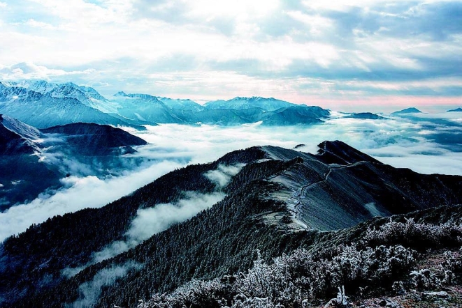 夹金山海拔4117米,位于小金县东南,属邛崃山脉,横亘于小金县达维乡与雅安地区宝兴县之间。这里地势陡险,山岭连绵,重峦叠嶂,危岩耸突,峭壁如削,空气稀薄,天气变化无常,也是中国工农红军万里长征徒步翻越的第一座大雪山,在山顶石标前,我们停留一会,拍了一张照片,不由自主冒出一句话“翻过夹金山,重走红军路”。