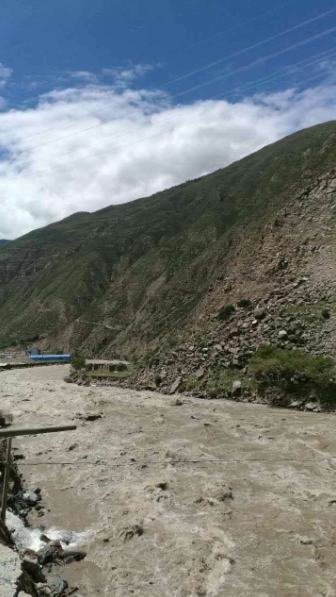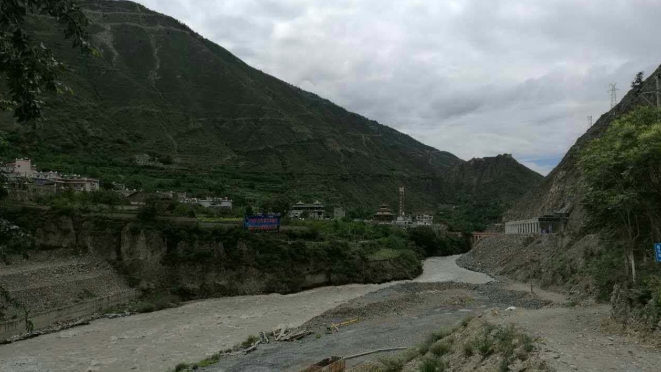饭后,我们路过小金山县的城郊,我感觉,天路基本是沿长江自东向西溯源,在沟壑中蛇形环绕,逐级抬升坎坷前行。如遇恶劣天气, 道路受阻应是正常现象。果不其然,行至小金县,前方的道路被湍急的岷江水流冲塌,打听一下得知,修通需7天,无奈只有绕道雅安,改走318。