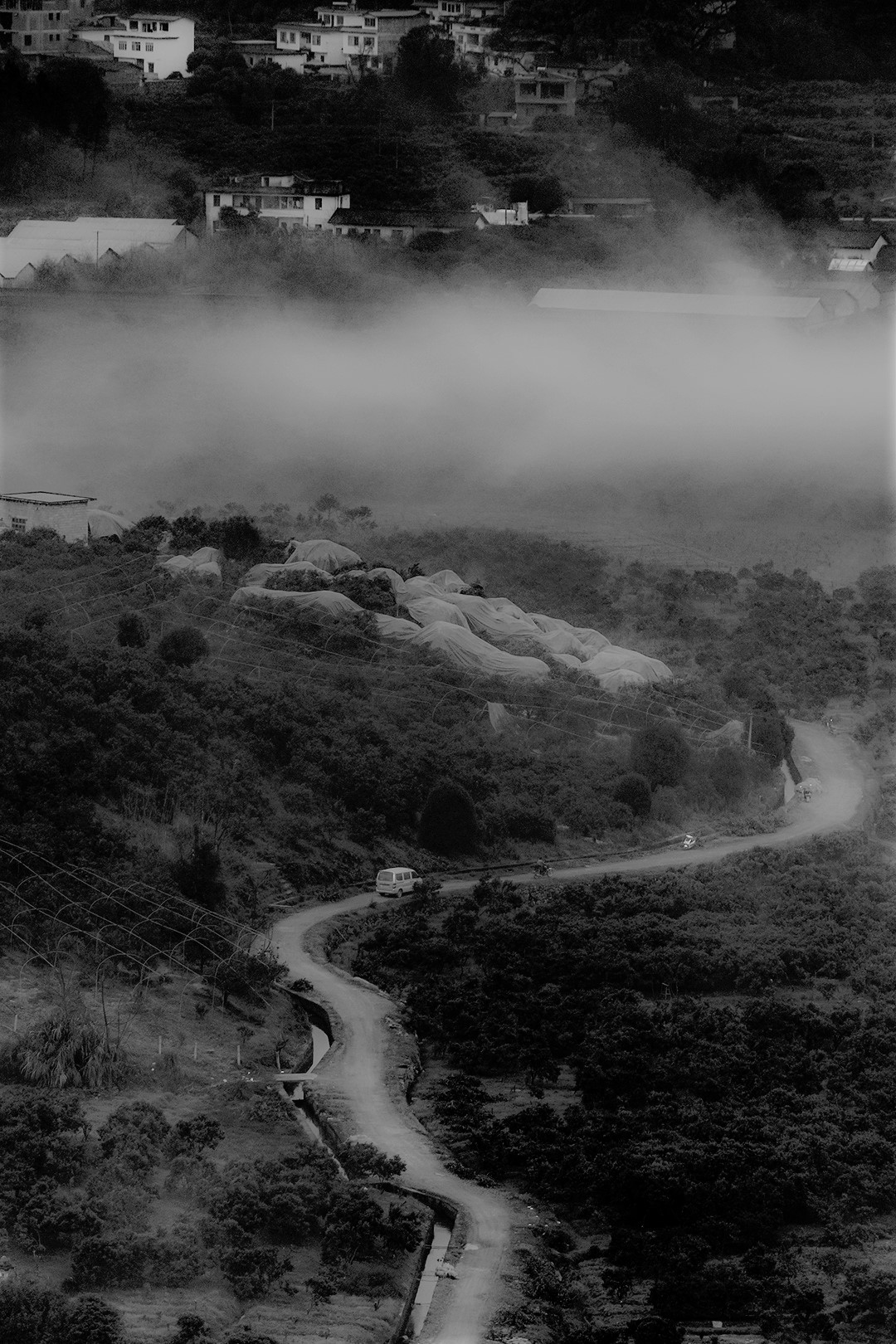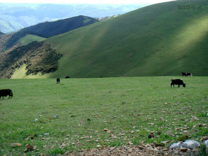 卡子拉山,海拔4718米。因海拔较高,树木就更加稀少,主要是高山草甸。在这里看山,层峦叠嶂,一层比一层更远,一层比一层颜色更浅,直至天边,真像行走在'天路'之上。翻越卡子拉山时,雾气开始散去,空中的云彩开始多起来,一会是洁白无瑕,一会是幽暗迷幻,瞬息万变。不过,只有在她的怀抱之中才能感受到这美幻的景色。卡子拉山说起来是山,但却感觉不出它是山,好象是到了美丽的牧场,牧草丰盛绵延至理塘,让人心旷神怡;虽然美景让人流连忘返,却不可能停车下来拍摄。面对绿茵如毯山坡上镶嵌的藏文,我也不知道什么意识,拍了张照片上群求解,浙青说是“扎西德勒”我回复字数不对。