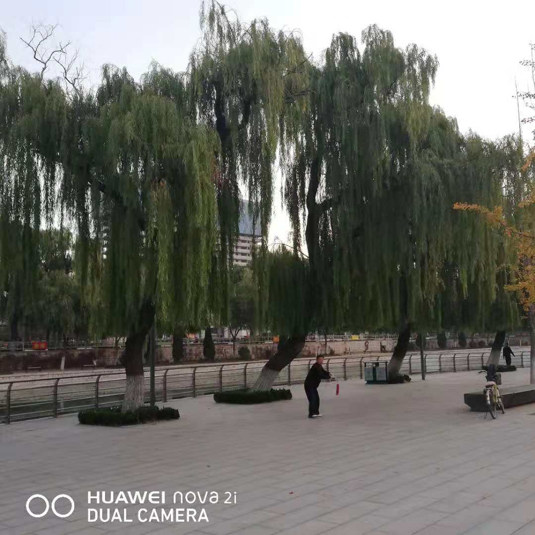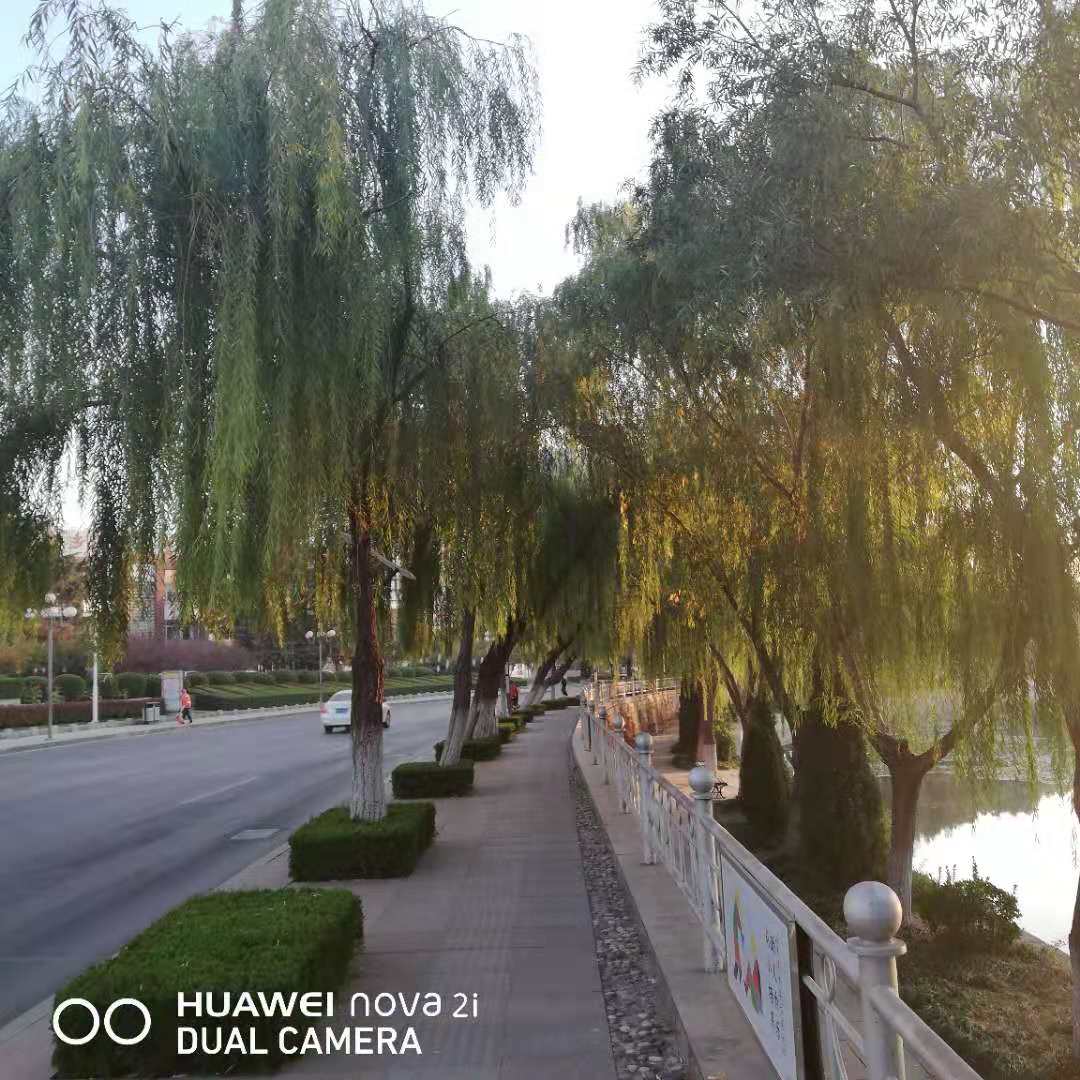 晨曦碧空映垂柳,