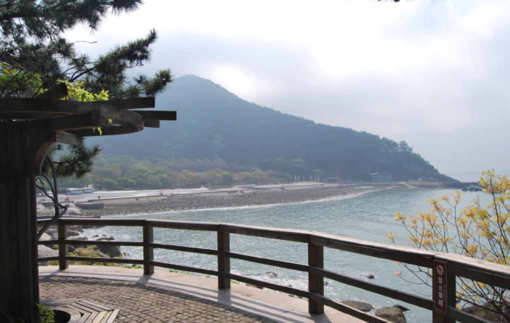 购票进入景区大门,从崂山客服中心乘车前往太清,八水河沿线首先映入眼帘的是山脚石壁上八个醒目的大字:“海上名山第一 崂山”。翠竹苍松相映,巨螺草坪衬托,仙禽神兽戏峰,云雾轻烟缭绕;好一派岛国风光。因时间紧迫,我们此行只在下清宫逗留,游览观光车沿着弯弯的山道盘旋,十几分钟抵达太清道观,从石梯缓缓而下,来到海边。