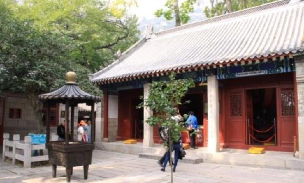 继续前行,路旁坐落着元辰阁和元君阁,分别是上仙斗姆元君和碧霞元君的供奉居所;穿过仪门,就到了三官殿的正门,华夏子民的三位祖先尧、舜、禹被尊称为天官、地官、水官,他们敬天爱民、地不生灾、治理水患的功德,让后人世代供奉;走出三官殿,路遇“逢仙桥”,许多游人在刻有标记的大石旁拍照,做一回偶遇神仙的‘夏梦’。