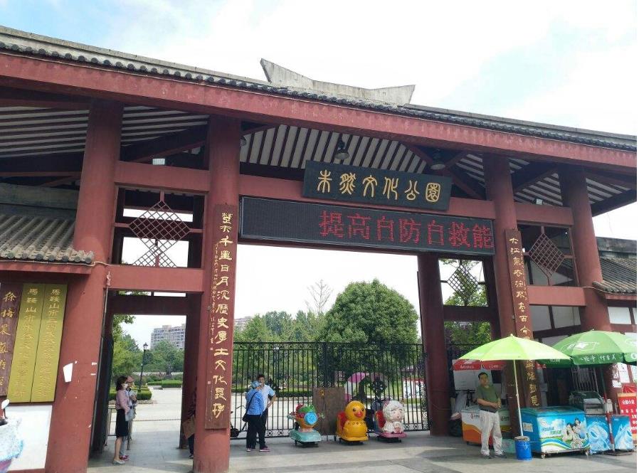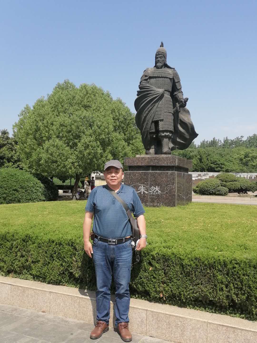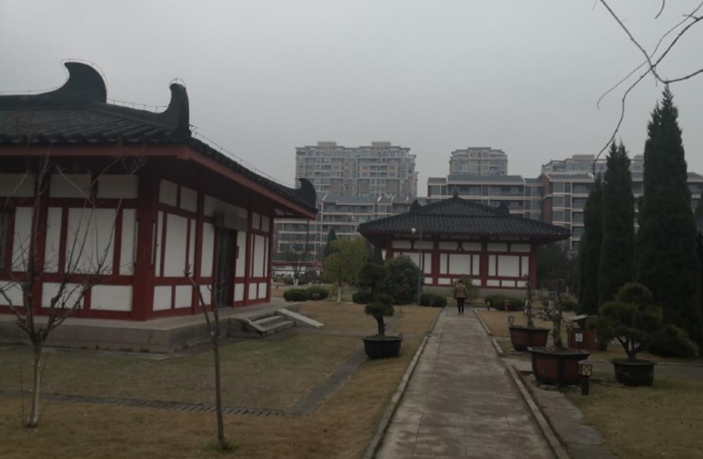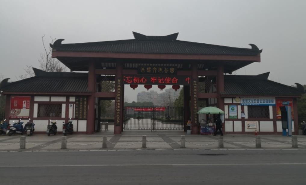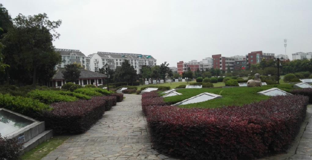 毗邻墓区的是“朱然文化公园”,穿过后院的小门,就来到园区。这里是一个集古文化和娱乐为一体的大众休闲健身的公共绿地。园内的朱然像气势磅礴,抚铠握刀的战神塑像栩栩如生,炯炯有神的双眼注视远方,仿佛在巡视江防,思考御敌之策,我也与英雄合影留念;