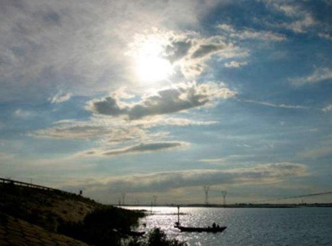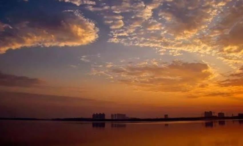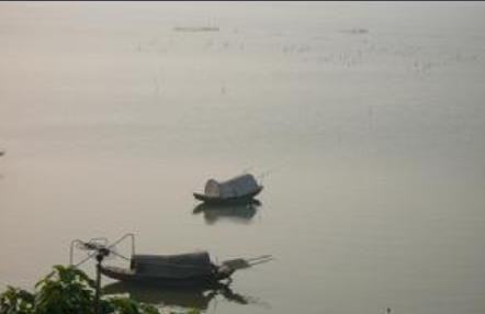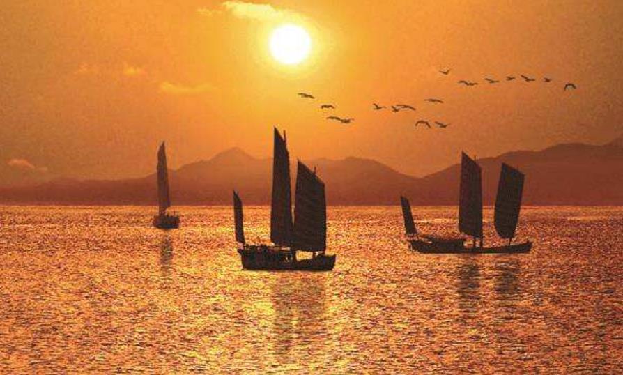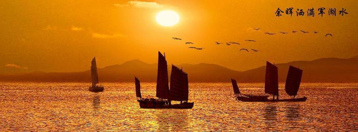 清晨,伴随着冉冉渐升的红日,东方地平线,霞光万丈,光照人间,余晖洒满军湖水,风帆逐浪百鸥飞,白云飘荡在蓝天,四周峰峦时隐现;环抱的湖水,如一面巨型宝镜,镶嵌在阔绰的风物镜框上。